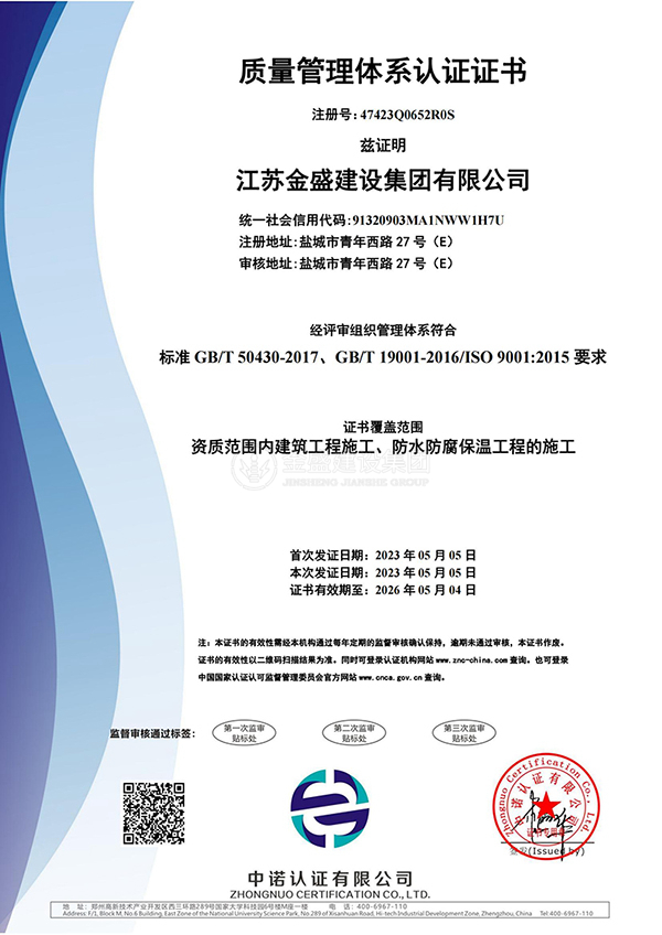 • 施工總承包貳級新防水防腐保溫工程專業(yè)承包一級